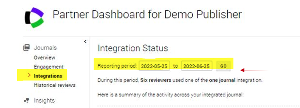 You can check your reviewer recognition service integration to see if it is live and data is feeding through by navigating to your partner dashboard and check the "Integrations page", looking for the journal you wish to check in the table.